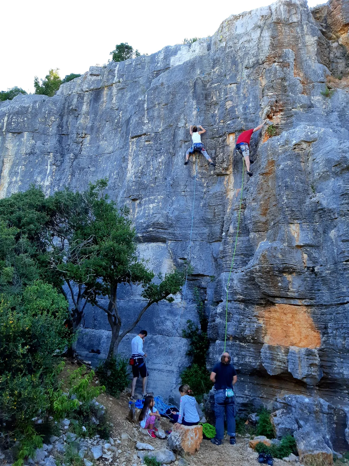 Can kids climb here? Absolutely. The flat approach, shaded rest areas, nearby beaches, and easy routes (including grade-3 lines) make it one of the most family-friendly crags in Croatia.