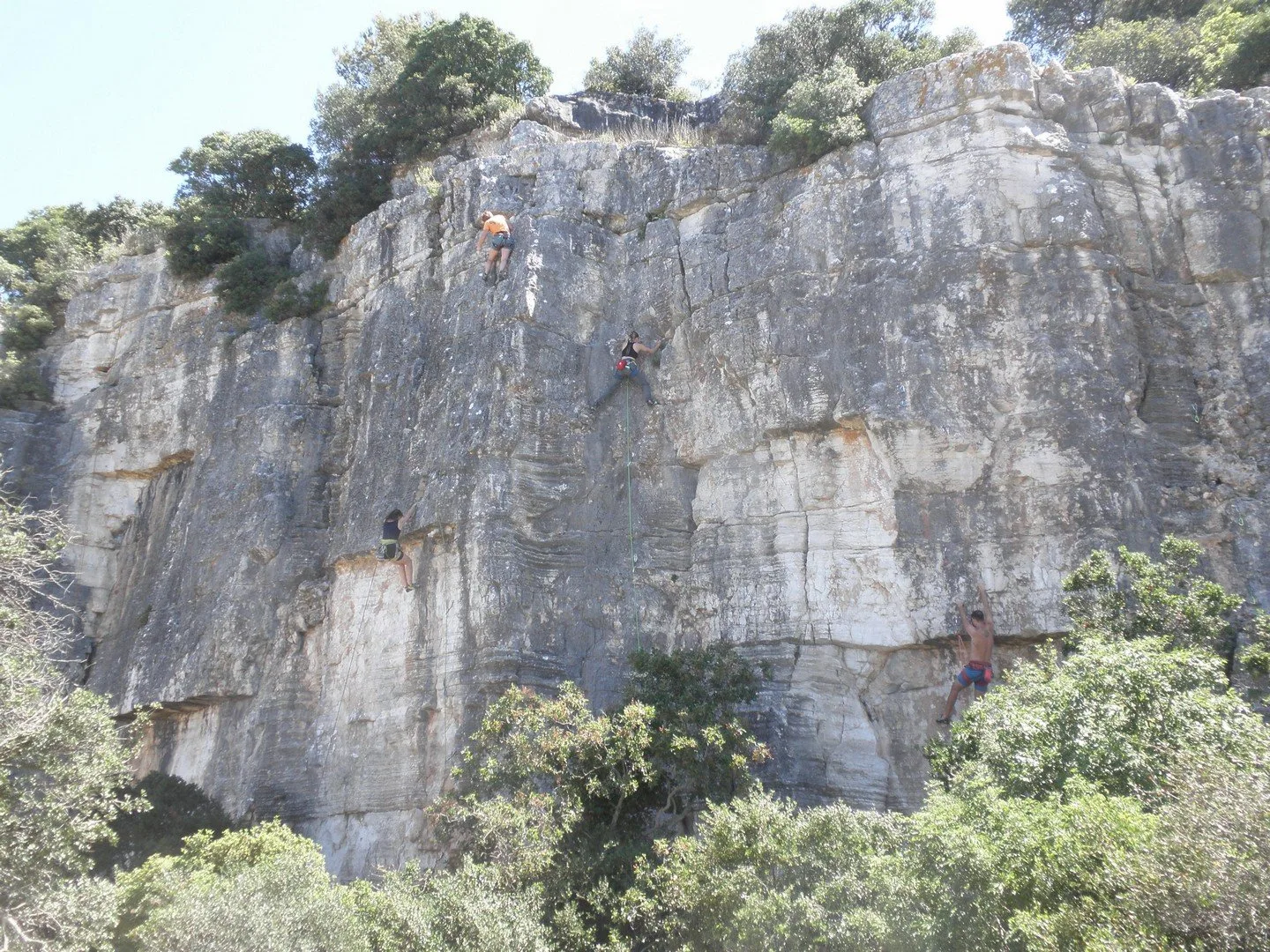 È una falesia molto apprezzata da famiglie e bambini — diverse scuole di arrampicata fanno qui le loro sessioni, e vedere bambini sulle vie più facili è normalissimo. Le zone piane sotto la parete, l'ombra e le spiagge a due passi rendono tutto comodo per chi ci passa l'intera giornata.