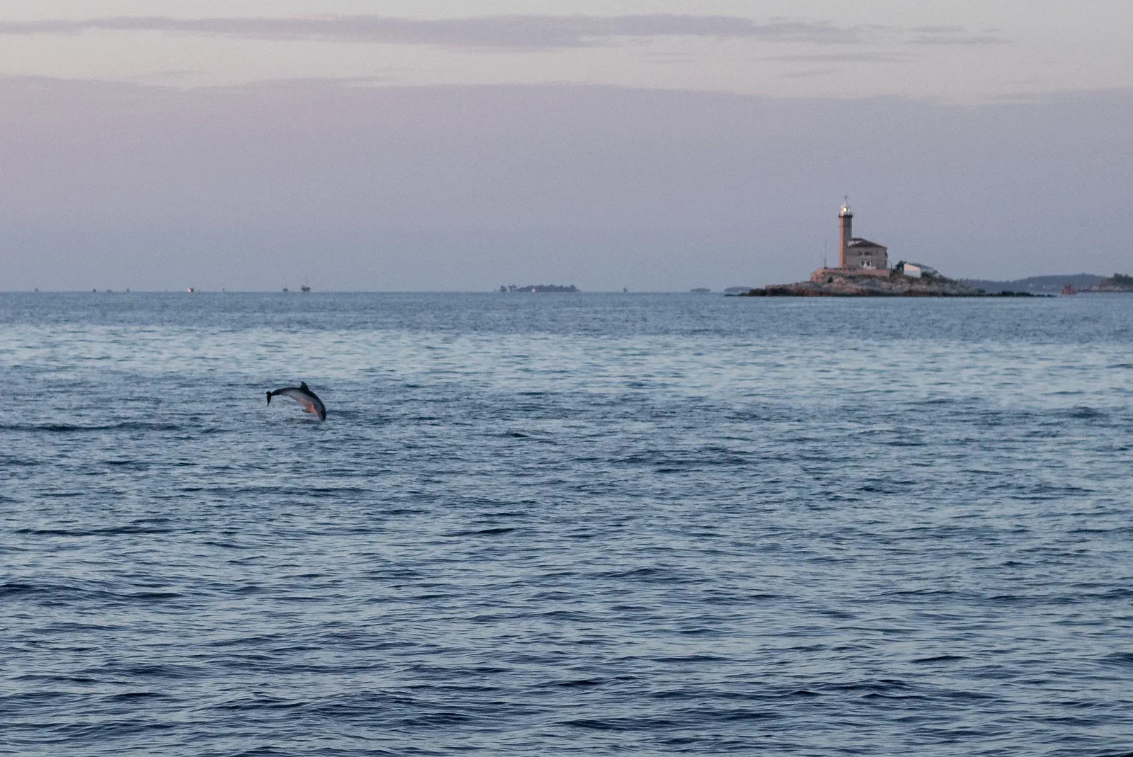 I tursiopi sono di casa in questo pezzo di Adriatico. Le uscite specifiche per vederli si fanno soprattutto di sera (i branchi sono più attivi a quell'ora e la luce è migliore), di solito 90 minuti–2 ore. Gli avvistamenti non sono garantiti — parliamo di animali selvatici — ma d'estate è frequente incrociare un branco almeno una volta.
