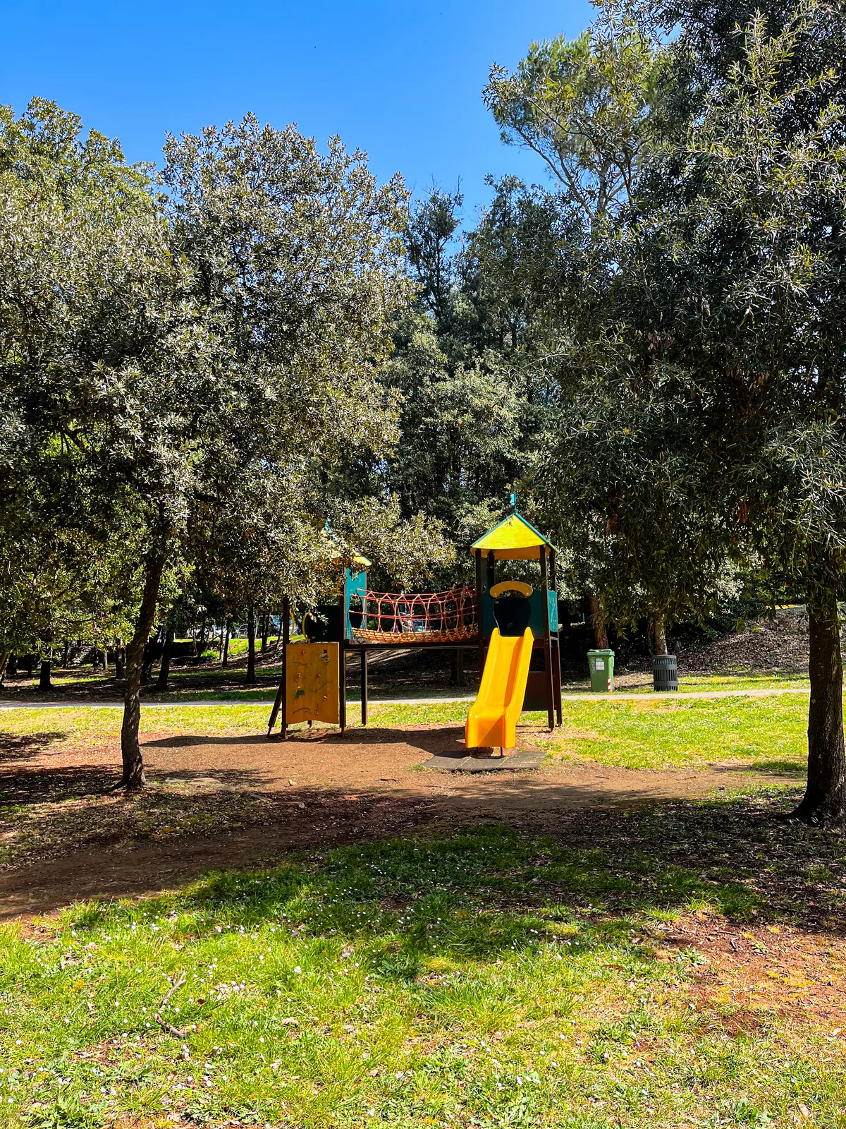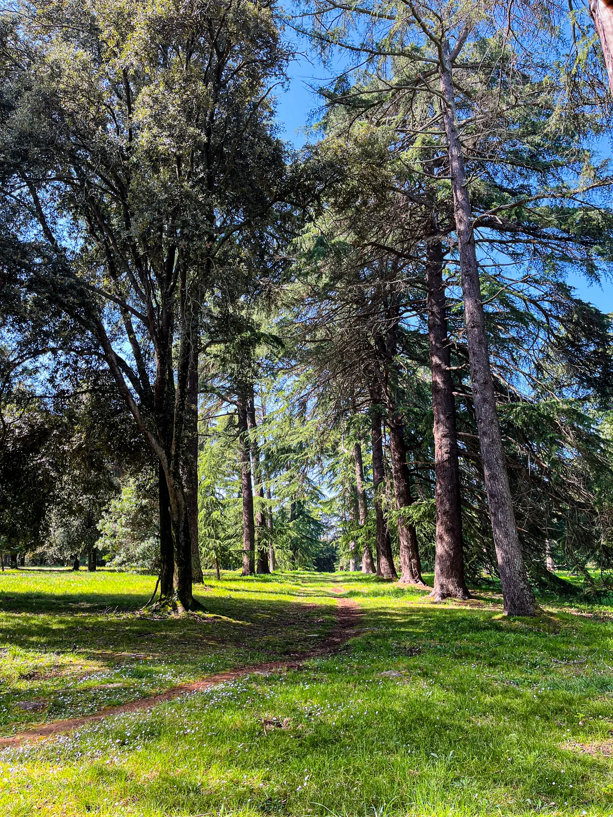 Circa 20.000 m² del parco è passeggiata a superficie dura e altri 5.000 m² sono sentiero forestale più morbido — quindi c'è molta ombra sia che tu stia pedalando, correndo o facendo una passeggiata lenta.